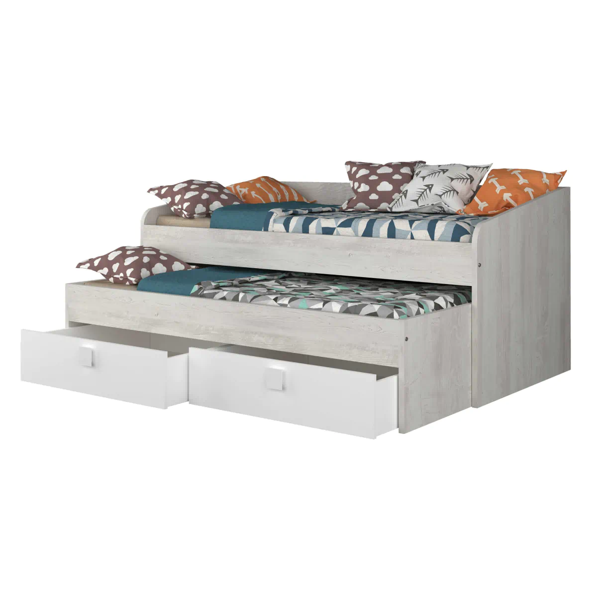 מיטות היחיד של הן פתרונות רב-תכליתיים, שבהם כל פרט תוכנן בקפידה. בהתאם לדגם, המיטות יכולות לכלול שולחן עבודה מובנה שאינו תופס מקום נוסף בחדר. מערכת האחסון המתוכננת כוללת מגירות נשלפות מתחת לאזור השינה, מדפי ספרים מובנים בראש המיטה ושידות נוחות. ארגון חכם זה מאפשר לנצל בצורה מקסימלית כל סנטימטר בחדר הילדים, תוך שמירה על תחושת מרחב ונוחות.