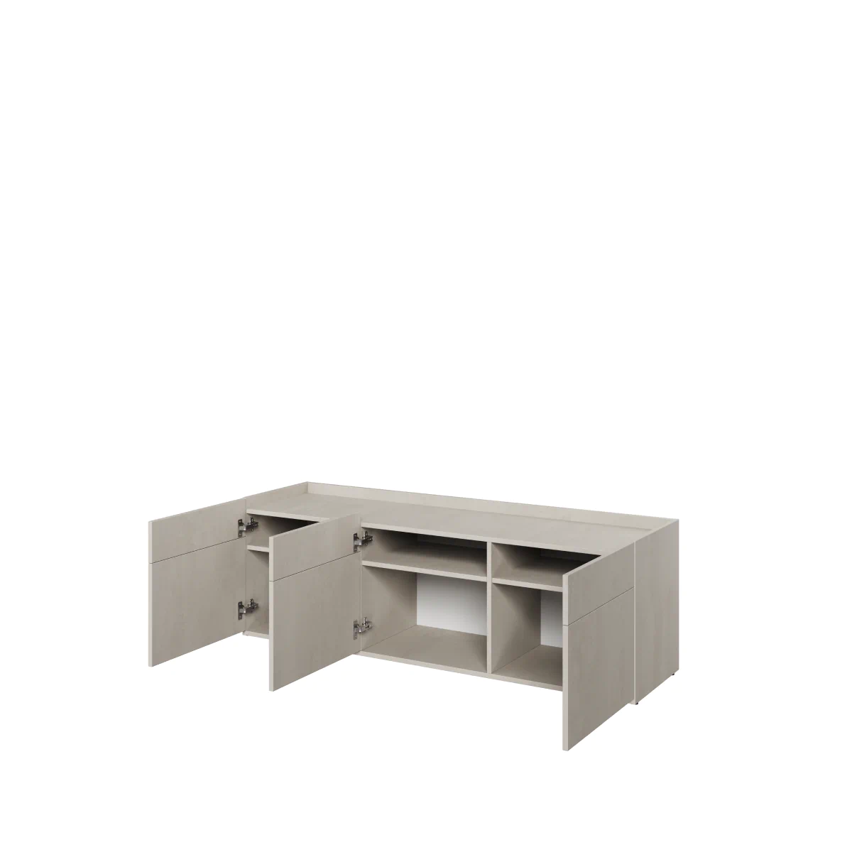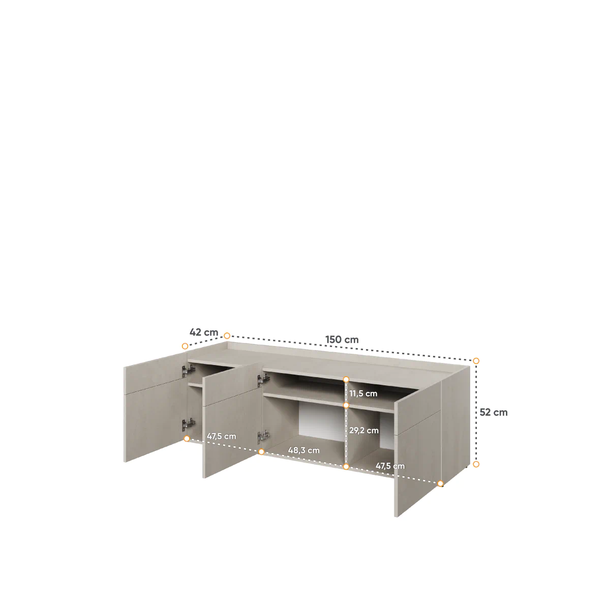 ארון מודרני לחדר נוער עם שלוש דלתות. בפנים הארון מסתתר סידור מדפים פונקציונלי, שמקל על שמירת הסדר. הרהיט מצויד במשטח עליון מונמך, המגן על חפצים המונחים עליו מפני נפילה. ניתן להשתמש בו בקלות, למשל, כארון לטלוויזיה (RTV). קולקציית TEEN FLEX היא סט על-זמני ומקורי של יחידות ריהוט, שתוכנן במיוחד לשימוש ממושך. הסגנון המעוצב של הרהיטים נובע משילוב של צבעים אופנתיים ומקוריים, צורה לא שגרתית ומודולריות. התאורה האפקטיבית הכלולה בקולקציה תוסיף ללא ספק אנרגיה לחדרו של המתבגר.