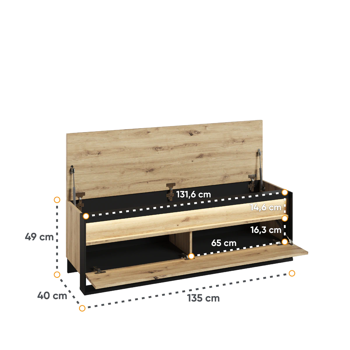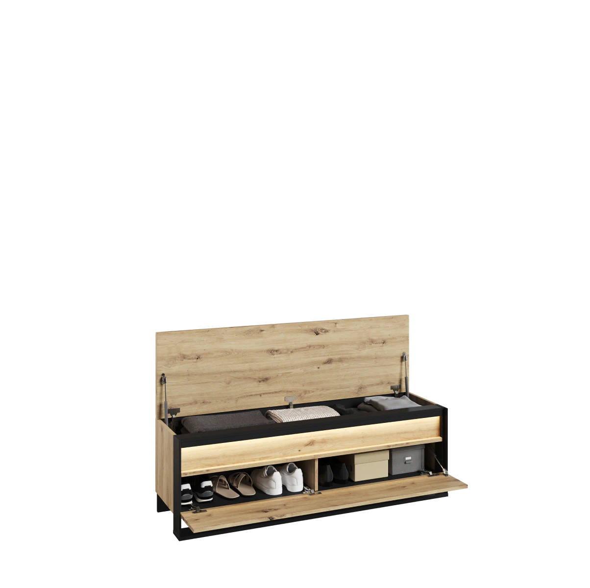 ארון הנעליים האלגנטי שלנו עם מושב משלב בין יתרונות שימושיים לאסתטיקה. הוא מצויד בשני תאים לאחסון, שיכולים להכיל זוגות נעליים רבים, ובכך מבטיחים סדר וארגון טובים במסדרון שלכם. בנוסף, המושב שממוקם בחלקו העליון של הארון יאפשר לכם לשבת בנוחות בזמן נעילת או חליצת הנעליים. ארון הנעליים מסדרת QUANT מתאפיין בעיצובו האלגנטי. הוא מיוצר בקפדנות ובתשומת לב לפרטים, ומוסיף נגיעה ייחודית לחלל הפנים שלכם. בין אם אתם מעדיפים מינימליזם מודרני או סגנון קלאסי – ארון הנעליים האלגנטי שלנו עם מושב ישתלב בצורה מושלמת בעיצוב הבית שלכם. יתרה מכך, הוא מצויד בתאורת לד אווירתית, שמכניסה לחלל אווירה נעימה ומזמינה.