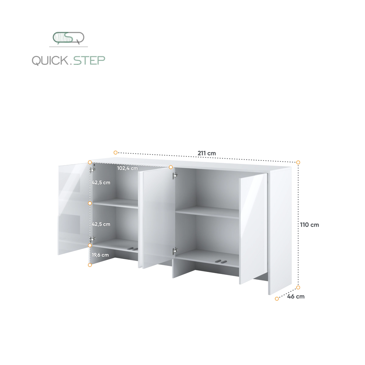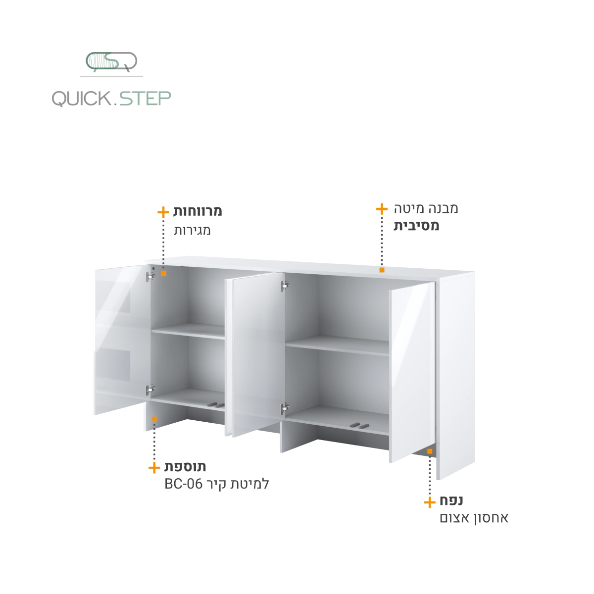 תוספת עליונה לארון עם ארבע דלתות. יחידת אחסון תלויה על הקיר להשלמת מערכת מיטה מתקפלת BC-06.