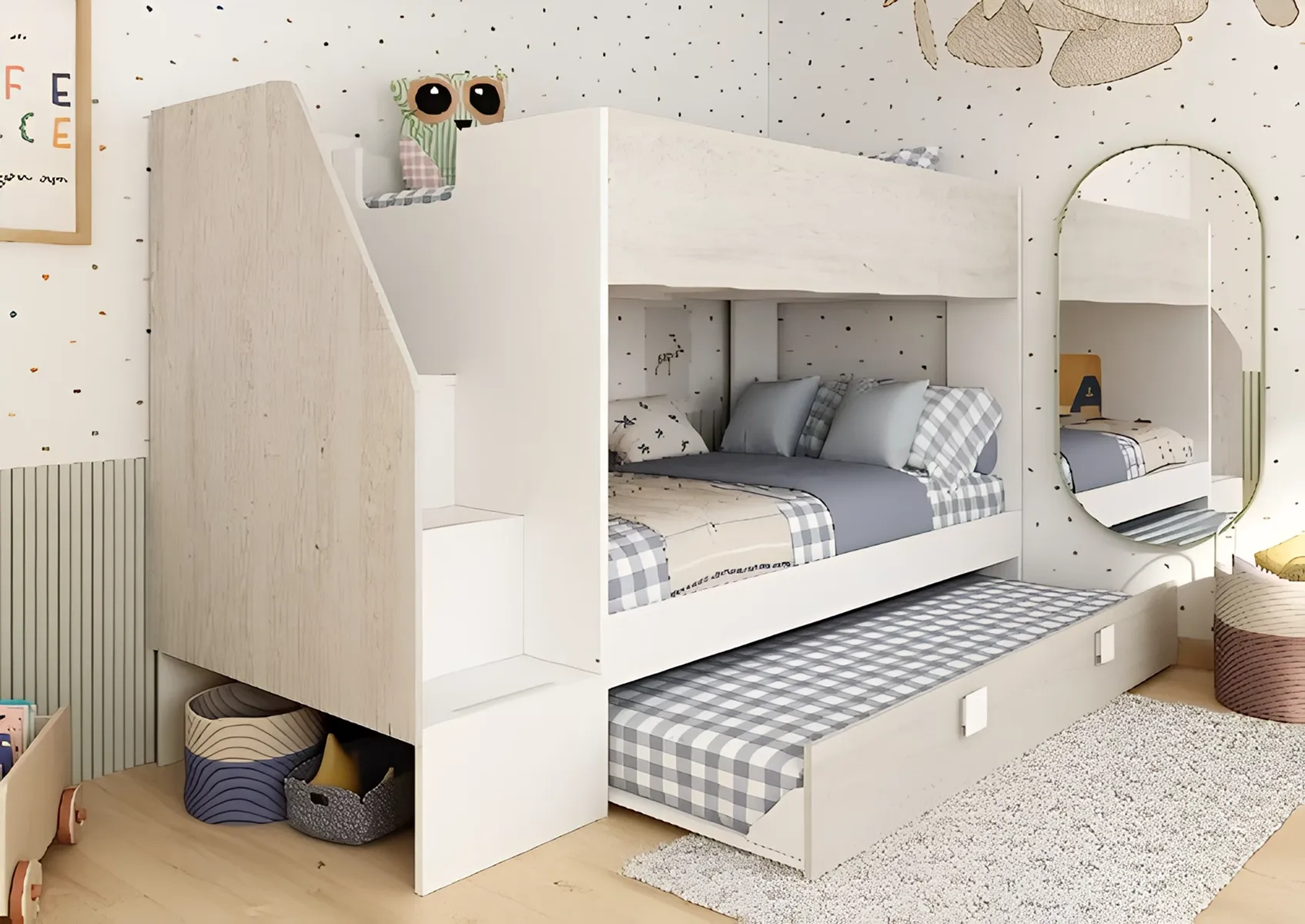 מיטת קומותיים Easy Classic עם מיטת חבר נשלפת מבית Trasman – פתרון חכם לחדר משותף ואירוח נעים