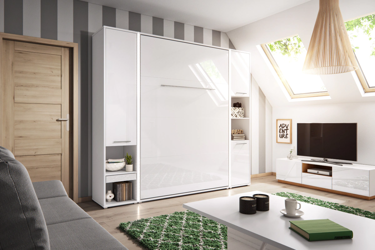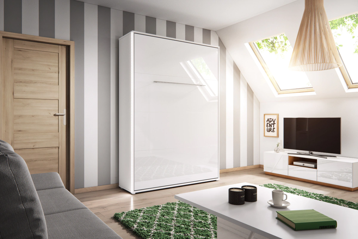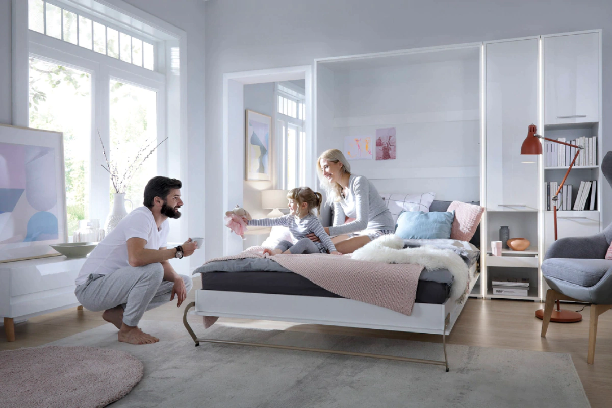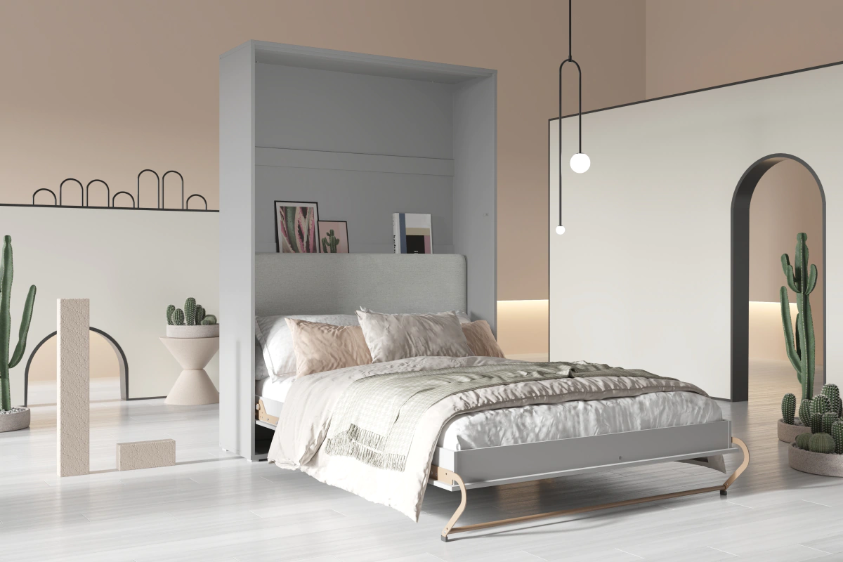 מיטה זוגית אנכית מתקפלת לארון – פתרון מושלם לחדרים קטנים עם מנגנון המאפשר פתיחה וסגירה של המיטה ביד אחת. מיטת קיר מעוצבת ופונקציונלית לשינוי מהיר של החדר.