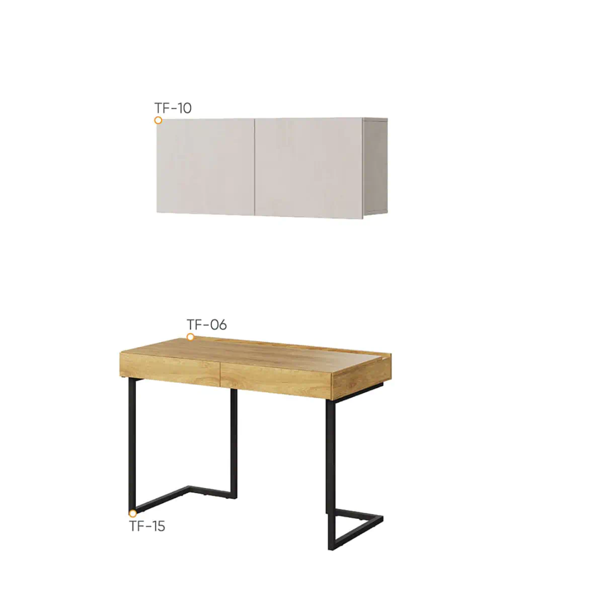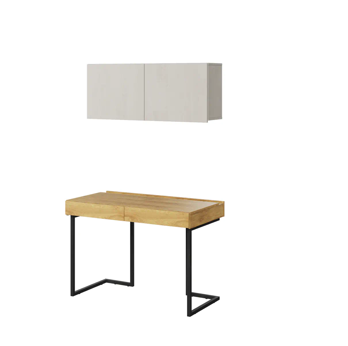 שולחן הכתיבה עם הארונית התלויה אינו רק פרקטי, אלא גם מוסיף יופי לחלל החדר. העיצוב המודרני והגימור הקפדני שלו יעניקו לחדר הנוער מראה עכשווי. השילוב המאופק של רגלי מתכת שחורות עם משטח בגוון היקורי טבעי ומדפים בצבע Silk Flou הוא שילוב על-זמני, המתאים הן לחדרי בנות והן לחדרי בנים.
