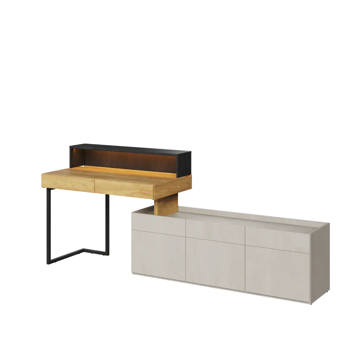 SET-13B הוא שולחן עבודה אטרקטיבי מבחינה ויזואלית עם תוספת מדף וארונית לנער, המספק שפע של מקום אחסון. זהו פתרון יצירתי שמתאים במיוחד לבני נוער הזקוקים למרחב מתוכנן היטב ללמידה ולעבודה. העיצוב המודרני והצבעים הניטרליים של הרהיט משתלבים בצורה מושלמת עם סגנונות עיצוב פנים מגוונים.