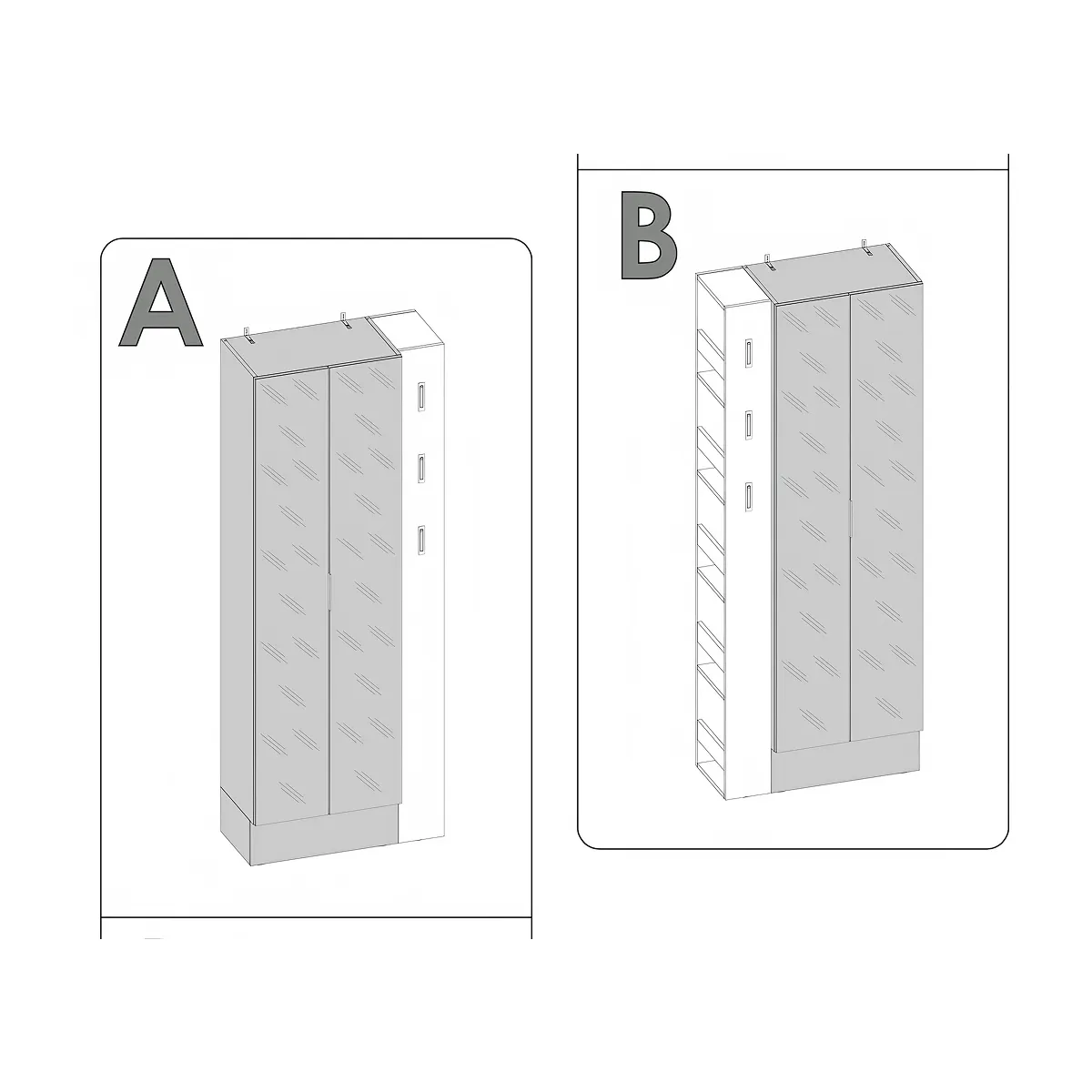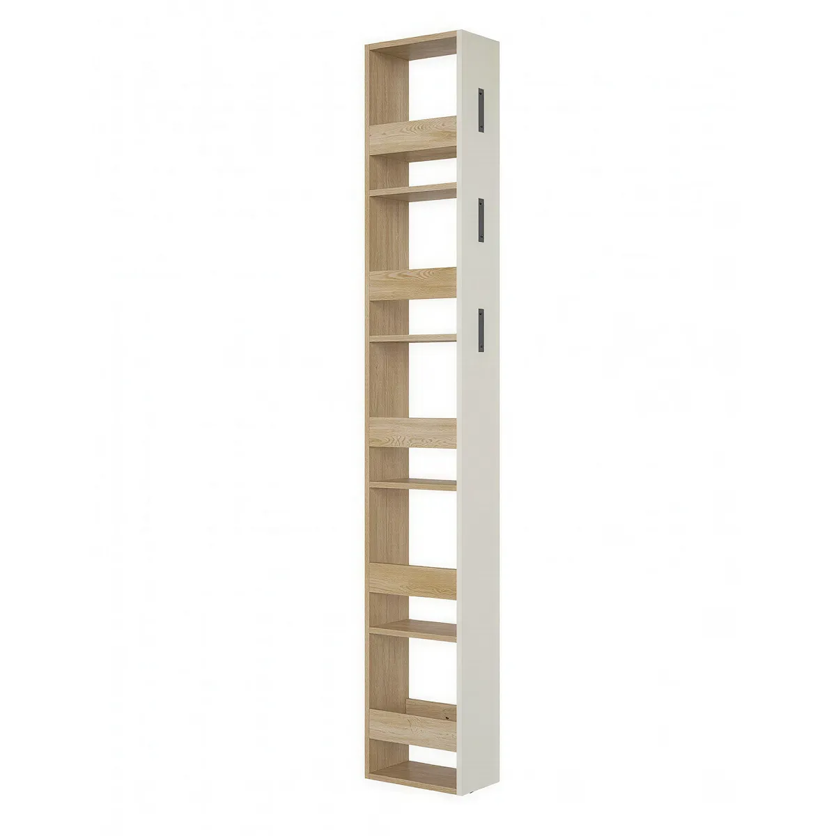 המבנה הגמיש של הפנל מאפשר התקנה מימין או משמאל לארון, בהתאם לפריסת הקירות או מיקום דלת הכניסה. כך תוכל ליצור פתרון אחסון מודולרי ואחיד, שמנצל כל סנטימטר של גובה מבלי להעמיס על עומק החלל – מושלם למבואות צרות שבהן כל טיפת מרחב נחשבת, אך יש צורך אמיתי באחסון זמין.