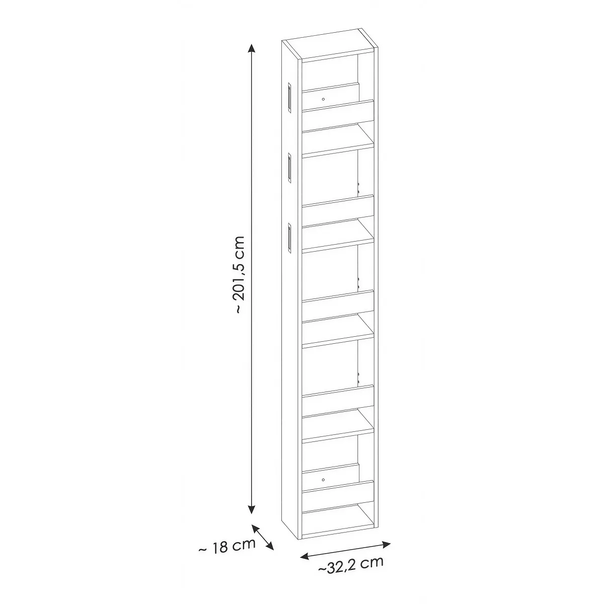 אם ארון הכניסה SARINA כבר עוזר לך לשמור על סדר בבגדים העליונים, הפנל הצדדי מהקולקציה הזו מעלה את חלל הכניסה לרמה חדשה של פונקציונליות. בתוך מבנה צר ודק – ברוחב של כמה עשרות סנטימטרים בלבד – מסתתרות מדפים מרווחים בגימור חמים של עץ אלון קרמונה, מושלמים לאחסון נעליים, כובעים או סלסלות דקורטיביות שתרצה בהישג יד לפני היציאה מהבית.