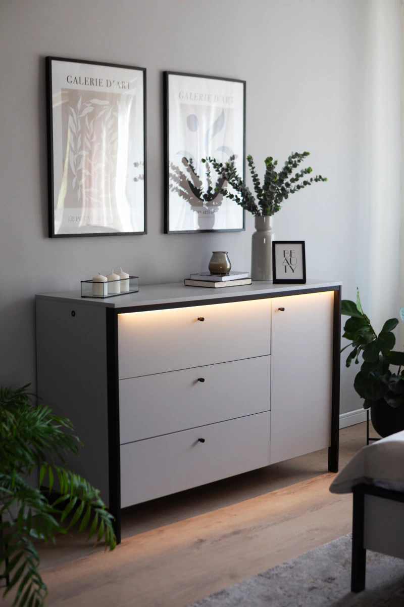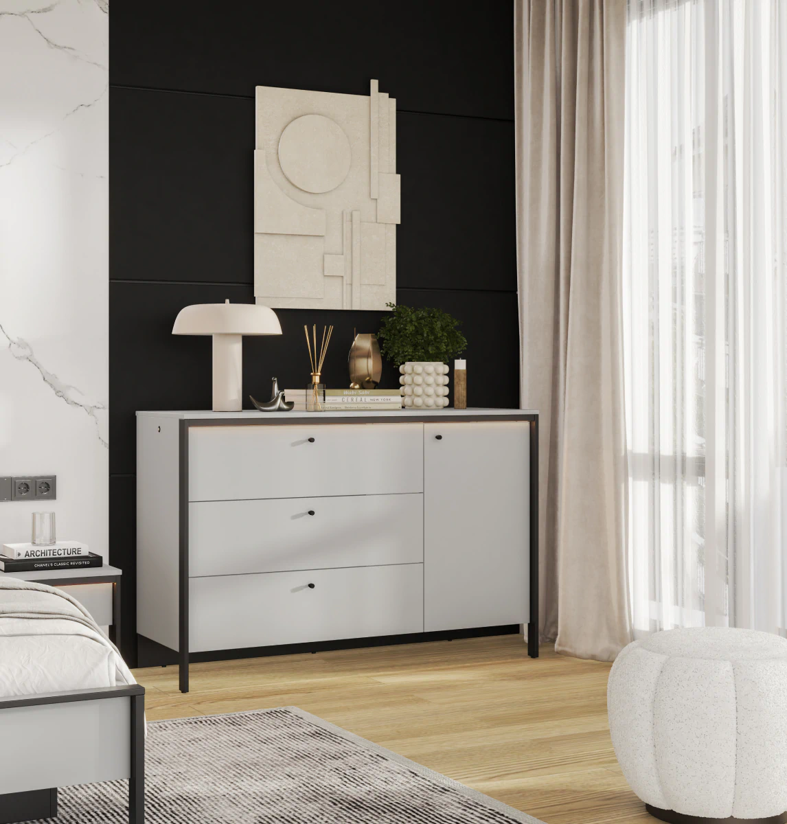 שידה בחדר השינה היא רהיט שמקל משמעותית על ההתנהלות היומיומית. בזכותה, שמירה על סדר הופכת לפשוטה יותר. דגם GS-04 מהווה בנוסף לכך קישוט ייחודי לחלל המנוחה שלנו. בזכות צבעיו הרגועים ותאורת ה-LED האווירתית, הוא מעניק לחדר קסם מיוחד.