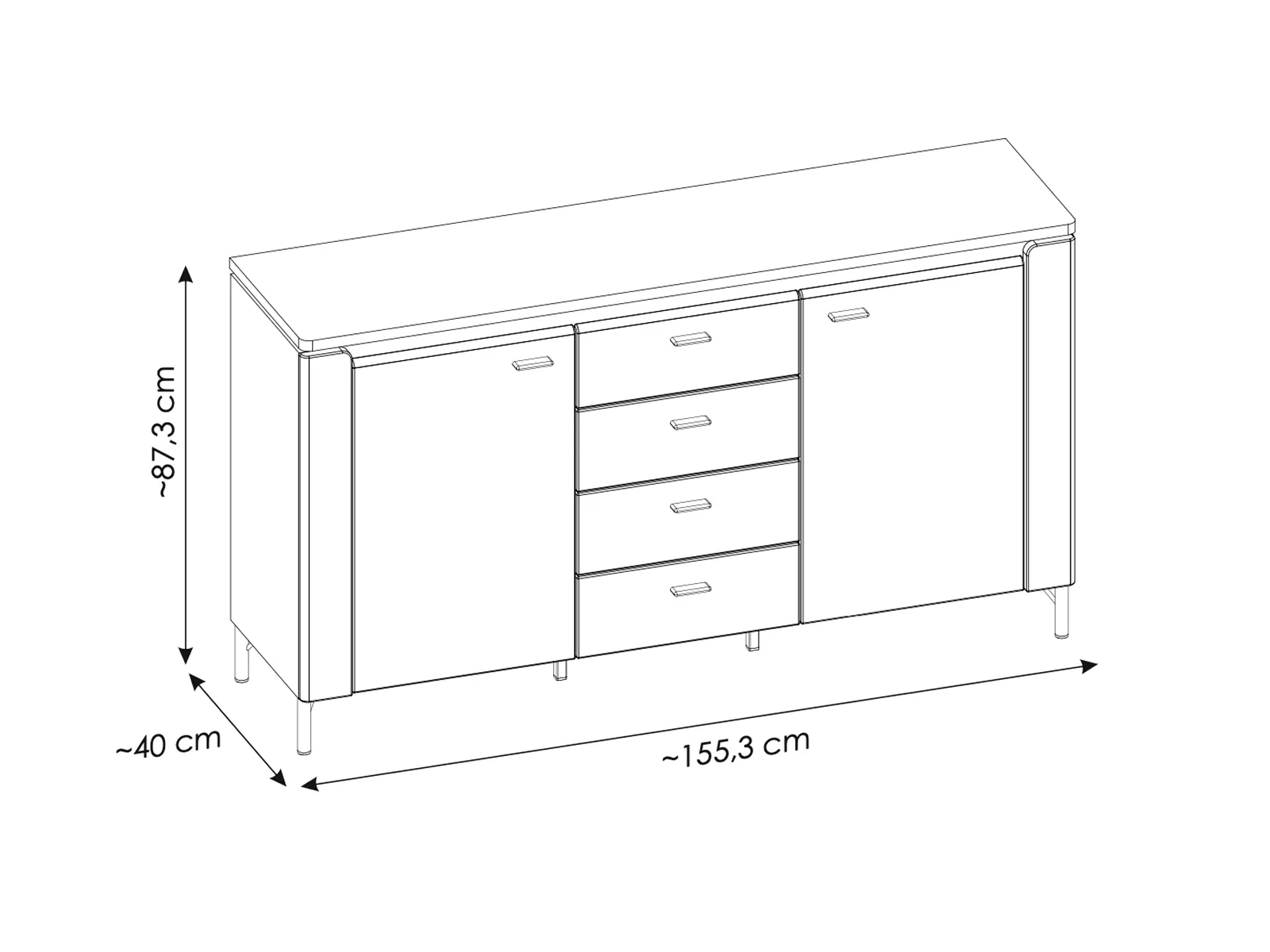 קומודה מרהיבה מסדרת Norica מציעה פתרון אחסון פונקציונלי במיוחד בשילוב מראה יוקרתי מרשים. הקומודה כוללת 4 מגירות מרווחות במרכז ו-שתי דלתות צד עם מדפים פנימיים — אידאלית לארגון בסלון, בפינת אוכל או בכל חלל מגורים מודרני.