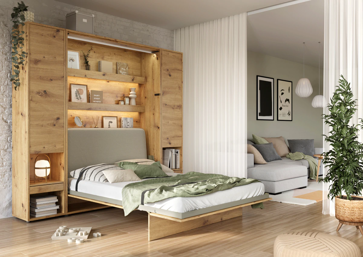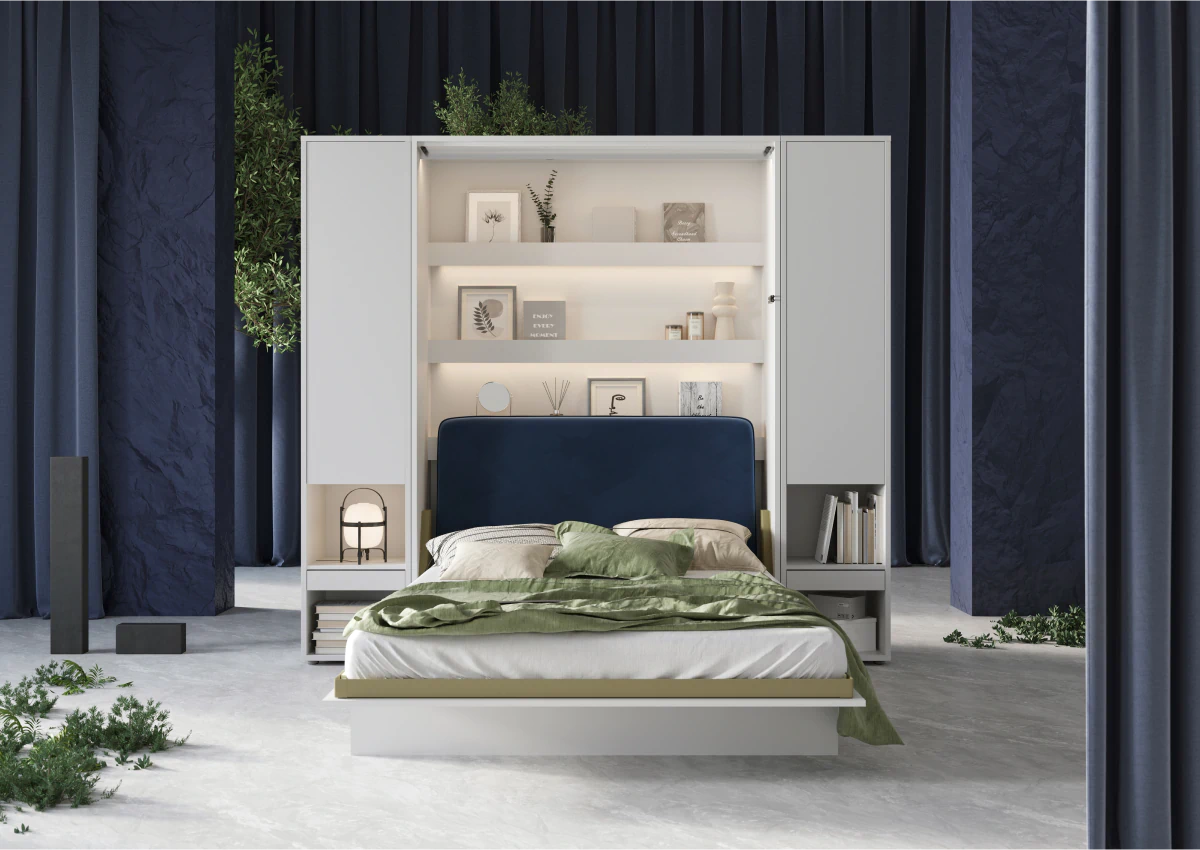 ראש מיטה מרופד מתאים למיטה זוגית מתקפלת לקיר מאפשר נוחות מקסימלית בעת קריאת ספר או צפייה בסרט במיטה.