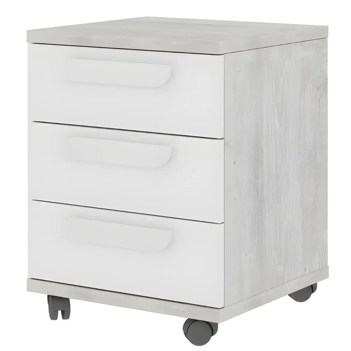 שידת לילה Bo0 עם גלגלים, 3 מגירות. עשויה מלוח שבבים ומצופה בשכבת מלמין איכותית. ניתן לשלב אותה עם המיטות מקולקציות Bo9 ו-Bo12 ועם מוצרים נוספים מקולקציית Bo0.