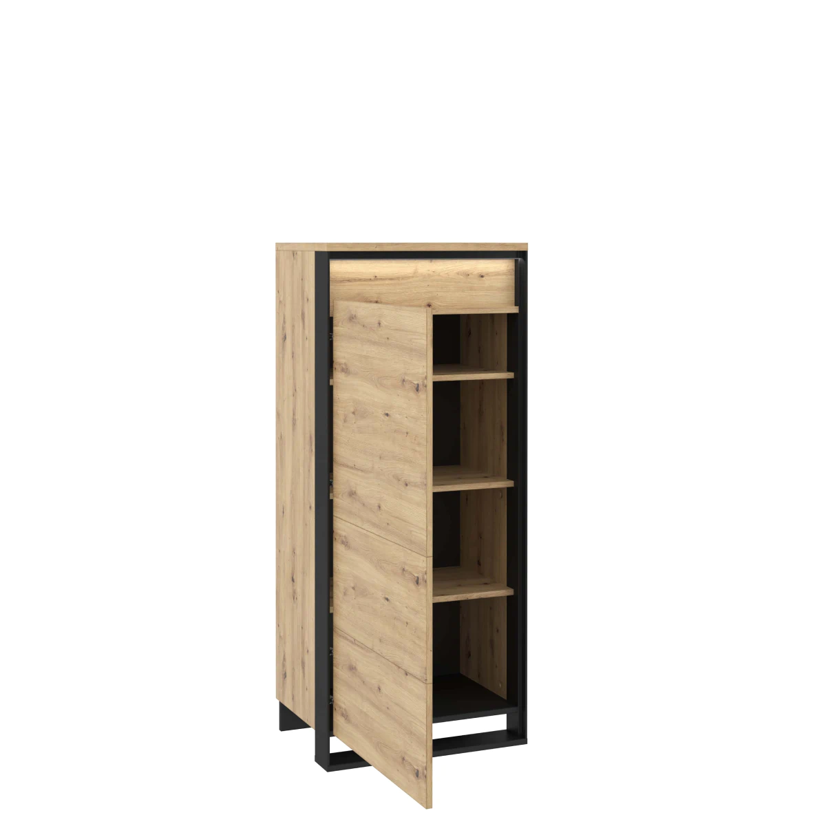 הארון מתאפיין באופי תעשייתי אופנתי. דקור מעניין עם טקסטורה בולטת של עץ משתלב בצורה נהדרת עם פרטים שחורים. האופי התלת-ממדי של החזיתות מודגש עוד יותר באמצעות תאורת לד (כלולה בערכה).