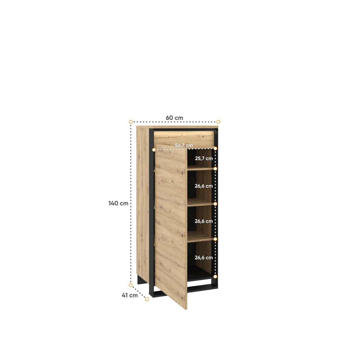 הארון עשוי מלוח למינציה עמיד עם גימור קצה ABS חזק. מנגנון PUSH TO OPEN תורם לנוחות השימוש.