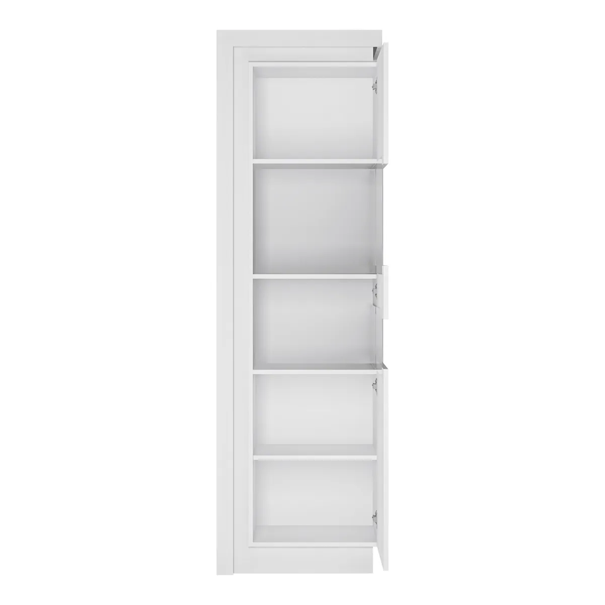 ויטרינה ימנית צרה מסדרת LYON White מציעה עיצוב מודרני בקווים ישרים, בגימור לבן / לבן מבריק, עם פתיחה נוחה מימין. הדלת היחידה משלבת זכוכית מחוסמת Antisol בגוון מעושן – להצגת פריטי דקור בצורה אלגנטית תוך שמירה על מראה יוקרתי.