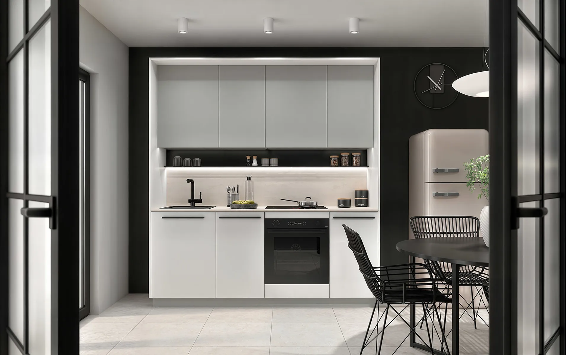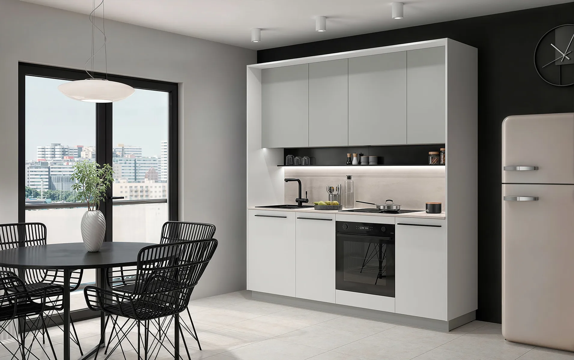 הפאנלים הצדדיים בגוון לבן אלפיני הם אלמנטים משלימים המיועדים לסט המטבח Milino Small. הם מספקים סגירה אסתטית משלושה צדדים – ימין, שמאל וחלק עליון – ליצירת מראה שלם ומוקפד.