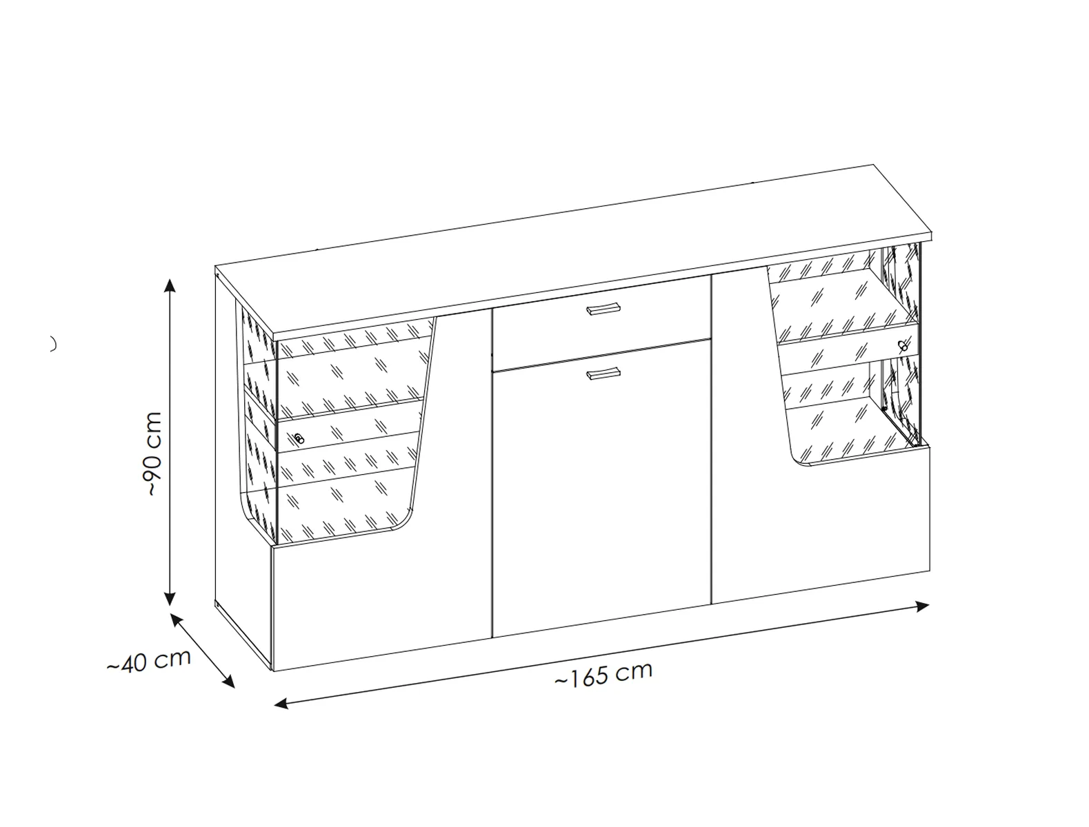 • מידות (רוחב/גובה/עומק): כ־165 × 90 × 40 ס"מ