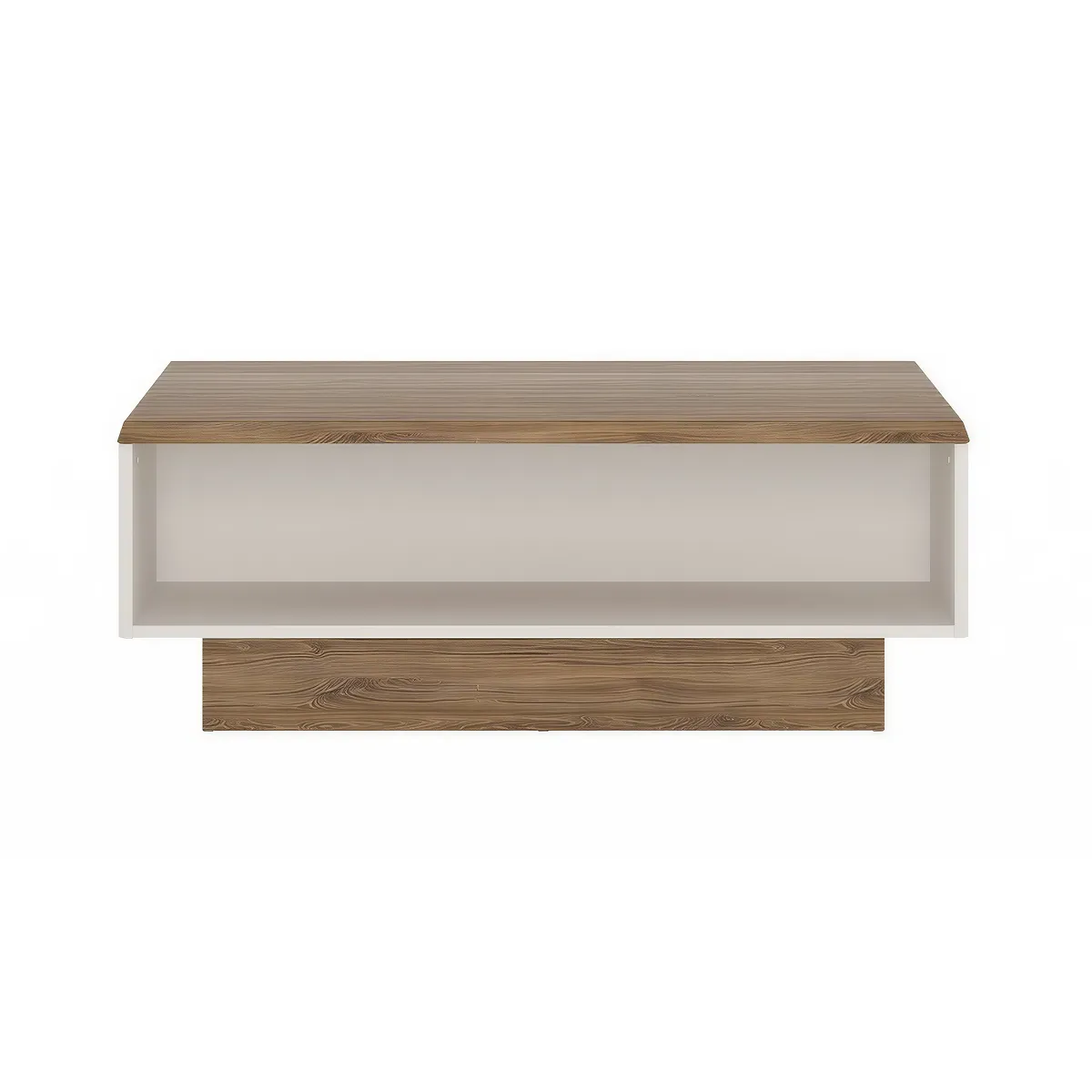 המשטח העליון בגימור עץ חמים מעניק תחושת ביתיות, בעוד הצבע הלבן הנקי של הגוף מדגיש את הקווים המודרניים ויוצר מראה מאוזן ואלגנטי.