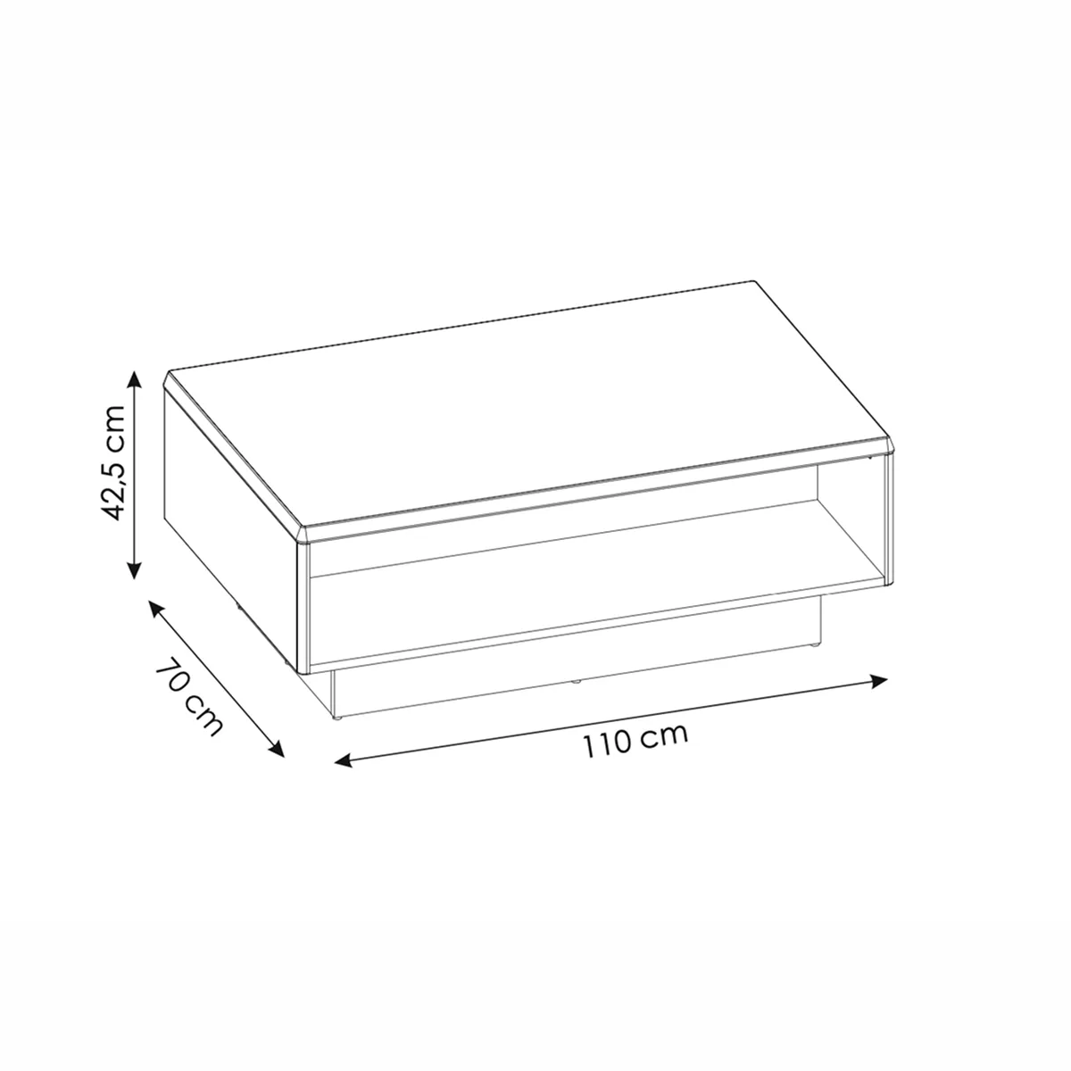 מתחת למשטח תמצאו מדף פתוח ונוח, אידיאלי לאחסון מגזינים, ספרים, שלטים או פריטים דקורטיביים. כך תוכלו לשמור על סדר וניקיון מבלי לוותר על נגישות.
