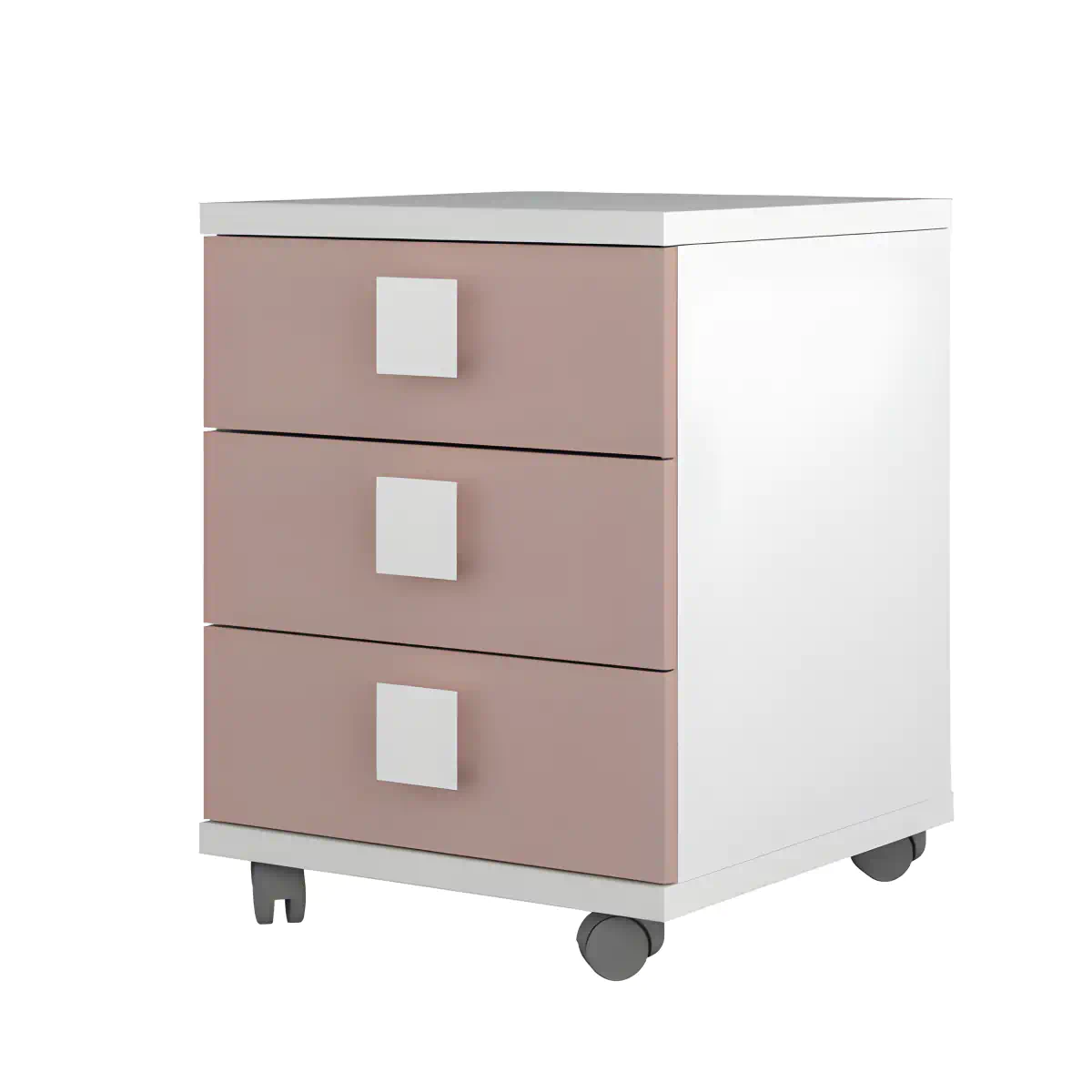 שידת לילה Bo0 עם גלגלים, 3 מגירות. עשויה מלוח שבבים ומצופה בשכבת מלמין איכותית. ניתן לשלב אותה עם המיטות מקולקציות Bo9 ו-Bo12 ועם מוצרים נוספים מקולקציית Bo0.